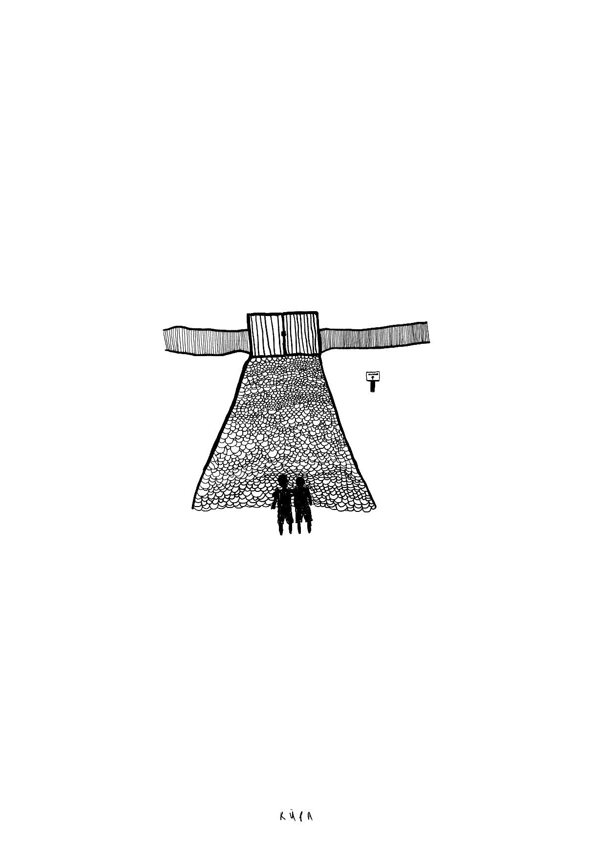 The JOURNEY print depicts two boys standing before a long path leading up to a fence. What lies behind the fence is unknown to the boys, and they are therefore contemplating whether they should embark on this journey. This piece symbolizes venturing into the unknown (as written on the board), a task many of us are often challenged with daily.